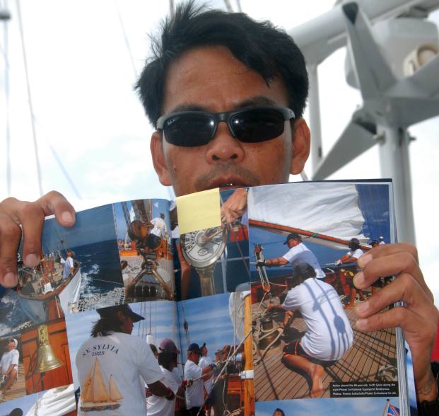 Auf der deutschen S.Y. SYLVIA, einer wunderschönen Gaffelketsch, 43 Meter lang, aus Holz ist er als Sailor und Carpenter von Malaysia nach Thailand und weiter über den Indic, Somalia, Yemen, durch das Rote Meer bis ins Mittelmeer, nach der Türkei und Italien gesegelt. "Dort hatten wir 5 Grad minus und das Deck war vereist, mir sind fast die Ohren angefroren, da bin ich in meine sonnige Heimat nach S.E. Asia zurückgekehrt und segle, wenn ich Zeit habe, mit meinem Freund Robin in der Andaman See". Eddie ist bekannt für erstklassige Holzarbeiten, perfekte Bootspflege und sein Hobby Nirosta Anker, Kette, Bug- und Heckkorb "shiny" zu wienern, dass man sich darin spiegeln kann.