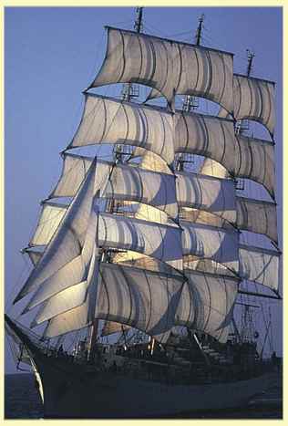 einer der letzten klassischen Windjammer, die noch unter Vollzeug die Weltmeere