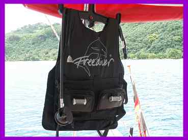 für die notwendigen Bleibeutel. Dieses "Tiefschnorcheljacket",