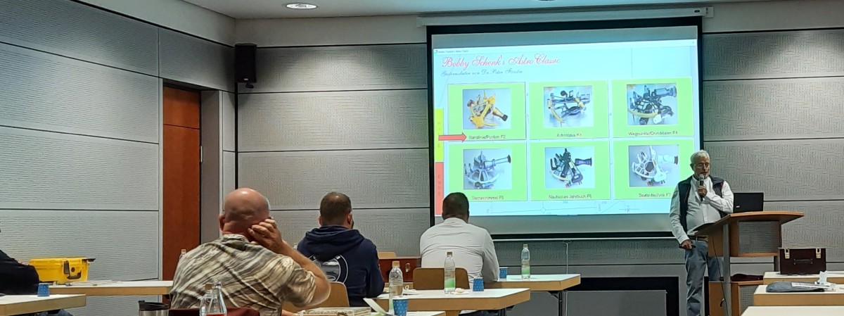 Und nun war der Blauwassersegler wiederum mit Tafel, Sextanten und der zeitlosen Gestirnsnavigation zu Gange, veranstaltete also sein Astro-Seminar. Das wievielte, vermochte Schenk nicht mehr zu sagen. 120 Teilnehmer wie früher waren es zwar nicht mehr, denn wegen Corona mussten im Saal auch die vorgeschriebenen Tischabstände eingehalten werden, aber ausgebucht wie immer war es allemal.