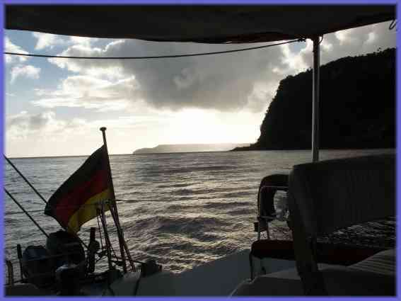 die hohe See. Ein Blick zurück zeigte uns die Kulisse von Huahine und mit ein