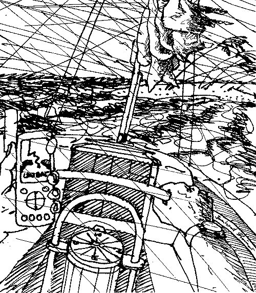 Ein erneuter Blick nach draußen brachte nicht mehr viel, denn inzwischen war es finster geworden. Nur drüben bei der anderen deutschen Yacht waren Lichter auszumachen. Hannes schaltete die Beleuchtung am Kartentisch ein und prüfte den Barographen: Das gefiel ihm nicht. Der Baro war in den letzten sechs Stunden um immerhin vier Hektopascal gefallen. Aber tröstlich - die für die Tropen typische Wellenlinie war noch auszumachen. Gerade noch. „Hätte ich doch gleich einen zweiten Anker ausgebracht!“ dachte sich Hannes, „es ist immer das Gleiche,