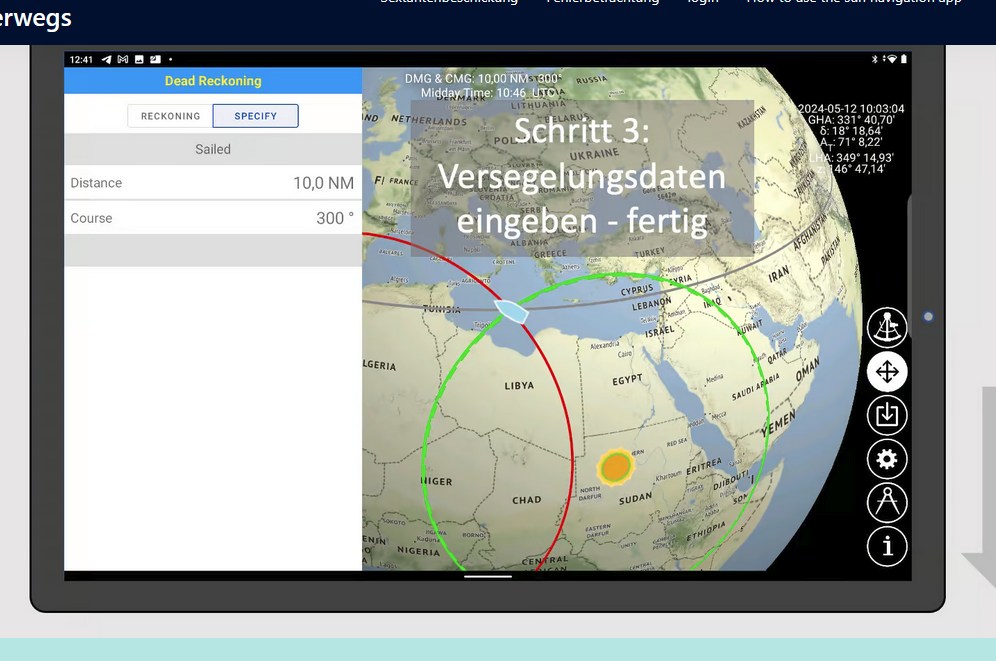 Doch zunächst einmal: Ich bewundere, wie viel Arbeit Herr Hoffrichter – als Fahrtensegler erst seit kurzer Zeit – in die Erforschung der astronomischen Navigation gesteckt hat. Um meine Beurteilung seines Programms auch für Laien verständlich zu machen, habe ich seiner Webseite einige Schaubilder entnommen – und zwar nur zu diesem Zweck. Anders kann das Programm, das ja vor allem als grafische Lösung propagiert wird, nicht beurteilt werden. Herr Hoffrichter bezeichnet sein Programm als besonders geeignet für Anfänger und für Segler, deren Kenntnisse in Mathematik überschaubar sind und die die Sonne nicht von anderen Gestirnen unterscheiden können.