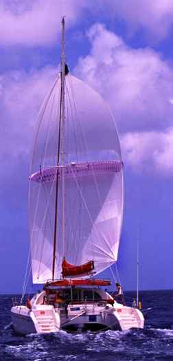 sein können, wenn katamarantypisch mit Groß und Genua statt Spinnaker vor dem Wind unter
