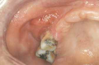 liegt eine deutliche Schwellung, die durch eine Eiteransammlung in diesem Gebiet zustande kommt, ausgehend von dem Wurzelrest. Hier ist eine Inzision(Schnitt) im Notfall auch von einem angeleiteten Laien in Lokalanästhesie möglich.