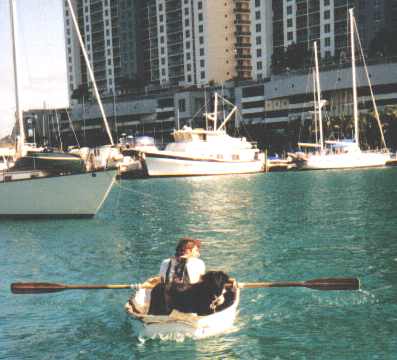 den Mischlingshund JoJo aus dem Tierheim, ich arbeitete in der Sealine Marina und später in der Miami Beach Marina (ich hatte zu