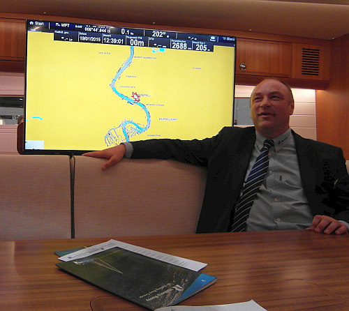 versenkbare Fernseher, auf den man, so man will, auch die Seekarten mit aktueller