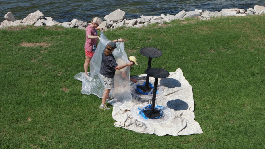 die anfallenden Arbeiten, wie heute, inklusive Stege überholen, Bojen neu streichen (und das wegen dem üppigen Muschelbewuchs alle zwei oder drei Monate),