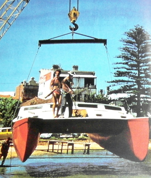 Katamarans TABOO III, der am 16.12.79 von Stapel lief. Mit der Österreicherin