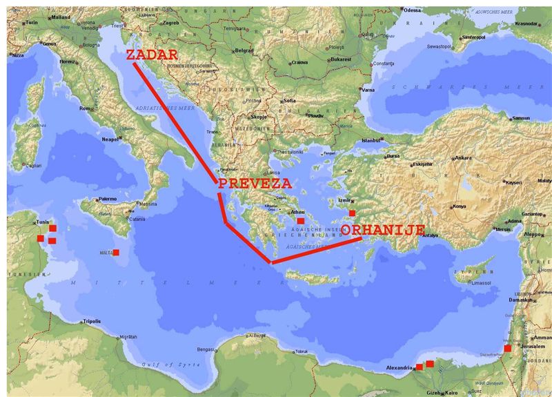 Andererseits sollte die Regatta aber im Mittelmeer stattfinden, einem Revier, das von den umliegenden Ländern schnell erreichbar und zum Beispiel für die Segler aus der Schweiz und aus Deutschland das Lieblingsziel schlechthin ist. Mit dem Zirkel auf 1000 Seemeilen gespreizt war ein entsprechendes Ziel von Kroatien aus, dem eigentlichen Heimatrevier von Österreich (schließlich waren alle die Gebiete früher in der Hand der Habsburger) leicht zu entdecken.