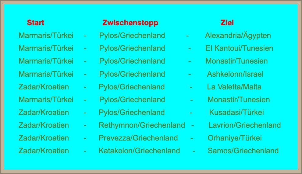 Nur Cypern musste ausgelassen werden, nachdem im Eckeryachting-Büro in Ried unmissverständliche Terrordrohungen eingegangen waren. Das zeigt einmal mehr, welchen Zwängen die Regattaserie 1000-Meilen-Race über viele Jahre hinweg ausgesetzt war.