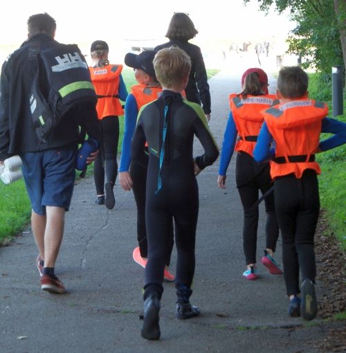 Schülerinnen waren schon bereit fürs Werkeln auf dem Wasser, alle hatten die