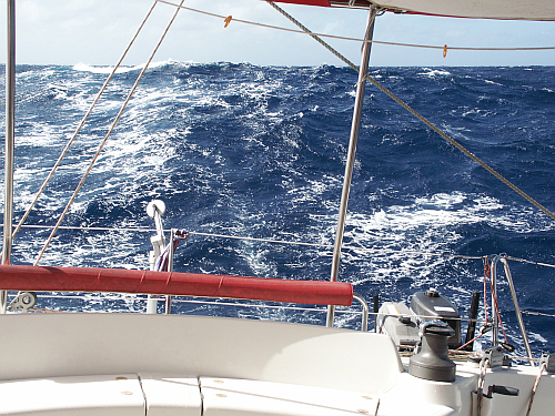 segeln wir nunmehr mit der Dünung und nicht die Wellenhügel gegenan: