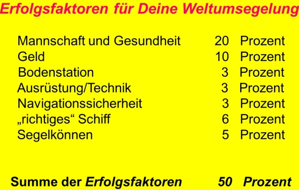 man über die einzelnen Faktoren für eine erfolgreiche Weltumsegelung
