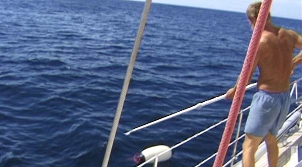 Also, wenn schon Rettungsweste, dann mit integriertem Sicherheitsgut! Der freilich nichts taugt, wenn der Mann nicht mit der Leine an einem fixen Punkt befestigt ist. Das heißt aber nicht, dass der Mann immer gesichert werden muß. Bei schönem Wetter im Cockpit zu sitzen und an der Reling eingepickt zu sein, ist nicht unbedingt nötig. Allerdings saßen Carla und ich einmal im achterlichen Passat bei schönstem Wetter ungesichert im Cockpit unserer 34-Fuß-Yacht, als plötzlich von achtern eine See einstieg, das Cockpit (und uns) derart überschwemmte, dass wir uns - ungesichert - auf der Reling sitzend wiederfanden.