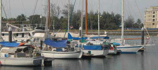 liegen hier noch einige wenige Motoryachten von Singapur oder Thailand, vom