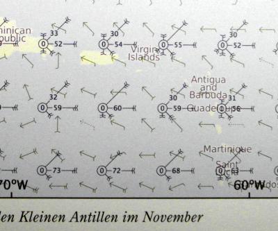 nach den Windkarten mit Passatwinden aus östlicher Richtung und fünf Windstärken rechnen hätte