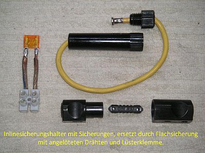 ersetzt (siehe Bild). Brennt mal eine Sicherung durch, nehme ich einfach eine Neue, an welcher die Kabel schon angelötet sein sollten um schnell wechseln zu können.