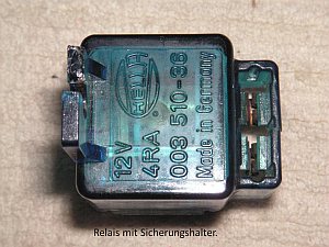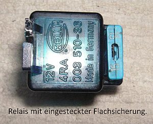 Ursache: An dem Relais ist ein Sicherungshalter für den Stromkreis angebaut. In Diesen wird dann eine normale Auto-Flachsicherung eingesteckt.