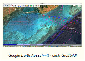 Wie das nachfolgende Beispiel zeigt, sollte man den Tracks nicht in jedem Falle blind folgen. Vielleicht sind diese Spuren von Schiffen mit wenig Tiefgang, vielleicht hatten sie Flut und ruhiges, sonniges Wetter. Wir wissen es nicht und die Umtände, wie diese Linien zustande