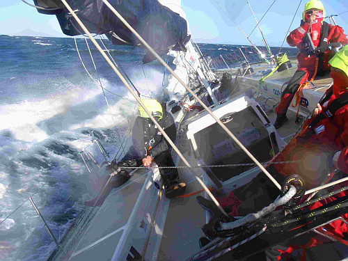 Im Rahmen des Clipper Round the World Races ereignete sich eine interessante Geschichte auf der Etappe von Rio de Janeiro nach Kapstadt im November 2009. Als Wachführer hatte ich gerade die Verantwortung an die zweite Wache übergeben und freute mich auf meine Koje nach der ersten Nachtwache. Die Mitglieder meine Wache waren bereits alle im Schlafsack und ich hatte mir mein Quartier in einer „Leekoje“ eingerichtet als urplötzlich daraus eine „Luvkoje“ wurde. Da wir achterlichen Wind hatten und eigentlich eine Halse von der Route im Augenblick nicht sinnvoll war, kann der Steuermann nur eine Patenthalse gefahren sein. Da auch Geschrei an Deck zu hören war, lief ich schnell zum Niedergang und schaute nach ob ich helfen kann. Der Steuermann war eine Patenthalse gefahren, allerdings konnte man ihn kaum dafür verantwortlich machen da sich das Steuerrad vom Schaft in der Steuersäule gelöst hatte. Ich weiß nicht ob es persönliches Schicksal ist oder wirklich immer eins zum anderen kommt: es ist stockdunkel, nicht gerade warm, mit Windstärke acht alles andere als eine Flaute und natürlich regnet es in Strömen. Zunächst dachten wir noch dass sich eine Verschraubung gelöst hatte aber wir stellten dann fest dass der ganze Schaft gebrochen war und dass eine Reparatur auf See wohl sehr schwierig werden würde. Im Nachhinein stellte sie sich als unmöglich heraus da hierfür keine Ersatzteile an Bord waren aber selbst dann wäre es bei dem Seegang wahrscheinlich nicht erfolgreich gewesen.