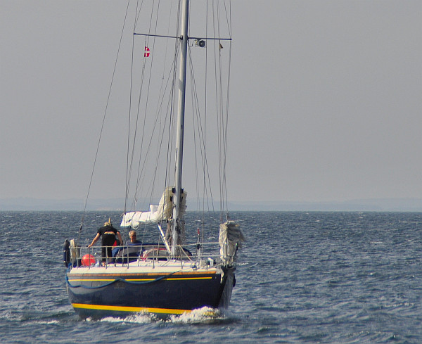 Am nächsten Morgen haben wir uns mit einem Freund verabredet, er soll bei der Überführung nach Flensburg dabei sein. Wir haben noch nie ein (wie wir heute wissen 13 Tonnen) so schweres Schiff zu zweit in engen Häfen manövriert. Die Idee war gut, die Schlei hat ordentlich Strömung Ulli und ich wären alleine ordentlich ins Schwitzen gekommen. Das Wetter ist ruhig, sogar sonnig, und wir tuckern die Schlei hinunter und die Förde hinein, in der Förde können wir sogar segeln. Es muss etwas majestätisches haben, ein früher Segler, den wir passieren, grüßt mit erhobenem Daumen. Wir sind begeistert. Schnell ist der Ärger bei der Übergabe vergessen und schnell sind wir unserem Traum ein Stück näher.