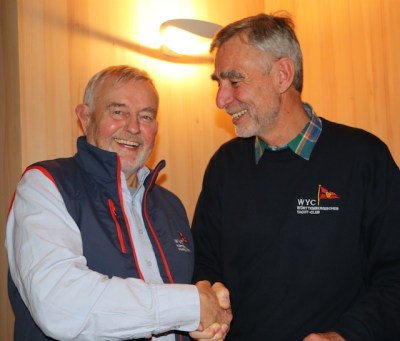 Ekke Diesch bedankte sich nach dem Vortrag bei Bobby Schenk mit einer Grundausstattung des WYC: Shirt und Weste mit dem WYC-Logo, das Jubiläumsbuch „100 Jahre WYC“ und einen Karton herzoglich-württembergischen Wein gab er dem Bayern mit auf den Weg nach Hause. Schenk hatte sich sichtlich wohl gefühlt beim WYC in Seemoos, das