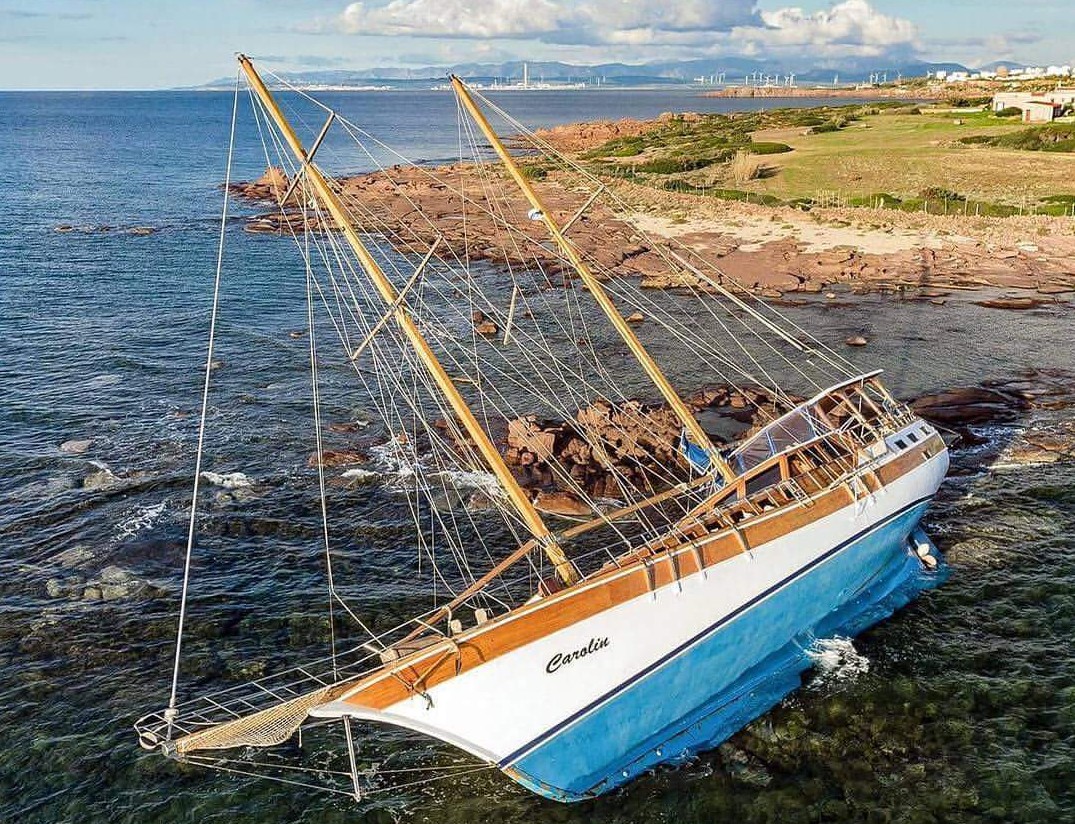 Mit unserer knapp 20 Jahre alten Gulet wollte mich Poseidon nicht über den großen Teich segeln lassen. Er meinte wohl, das Schiff sei nicht dafür geeignet und schickte mich vor Sardinien mitten in der Nacht auf die Felsen. Meine erfahrenen Mitsegler, Bruderherz Ekke und Cousin Rudi und Ede, kamen blitzschnell aus den Kojen und waren geschockt. Die Wellen spülten uns so schnell an Land, dass wir am nächsten Morgen hüfttief durch die hohe Brandung aussteigen konnten. An Freischleppen war nicht mehr zu denken. Ich glaube ja ein bisschen an die Fügungen des Universums und im Nachhinein muss ich zugeben, dass es mit den alten Holzmasten und ohne vernünftige Navigations-Instrumente keine gute Idee war, eine Atlantikrunde zu drehen. Ich dachte, wenn Kolumbus das mit seinen Holzschiffen geschafft hat, warum soll es mir nicht auch mit einer in die Jahre gekommenen Gulet gelingen.
