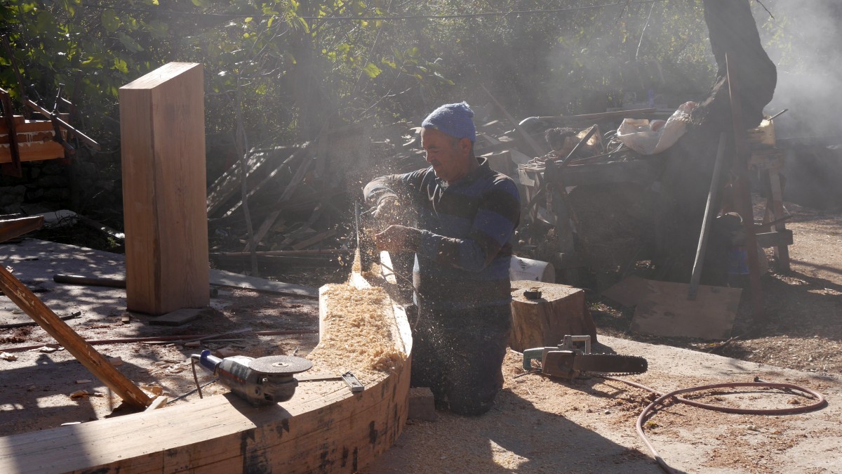 In der Sommersaison arbeiten unsere Bootsbauer nämlich auf den eigenen Schiffen, Mehmet ist Kapitän auf der 33-Meter-Gulet und sein Sohn Caner auf der älteren 25-Meter-Gulet, und diese müssen ja auch noch überholt und wieder zu Wasser gelassen werden.
