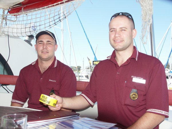 Wir kamen mit dem Schrecken davon, als einer der Beamten unter den Tisch im Salon leuchtete und aufgeregt schrie: There ist an ant!" ("da ist eine Ameise!"). Aber nach einer Untersuchung des Eindringlings in australische Hoheitsgewässer unter der Lupe erklärte man das arme Tierchen für harmlos und beendete sein Leben.