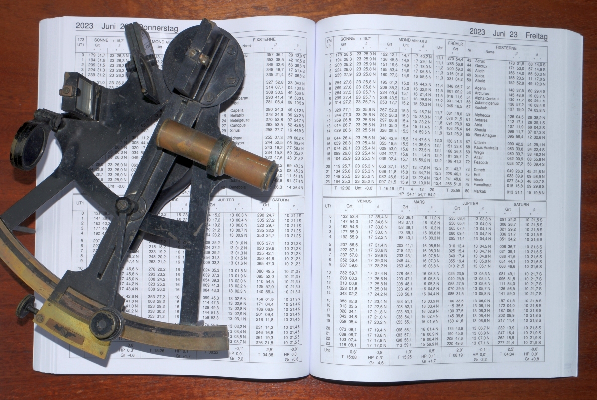 Die deutsche Behörde BSH (Bundesamt für Seeschifffahrt und Hydrographie), vorher war es das DHI, brachte deshalb 126 Jahre lang jedes Jahr das Nautische Jahrbuch heraus. Und zum Erstaunen, ja zum Entsetzen von Yacht-Navigatoren wurde das NJ im letzten Jahr eingestellt. Der Grund waren nicht nur die Kosten für die Formeln von der Heidelberger Sternwarte, sondern der Umstand, dass die Berufsschiffe auf großer Fahrt nicht mehr mit einem Sextanten ausrüstungspflichtig waren. Dass damit ungezählte seegehende Yachten unter deutscher Flagge eines der wichtigsten Hilfsmittel beraubt wurden, scheint für eine deutsche Behörde nicht so interessant zu sein.