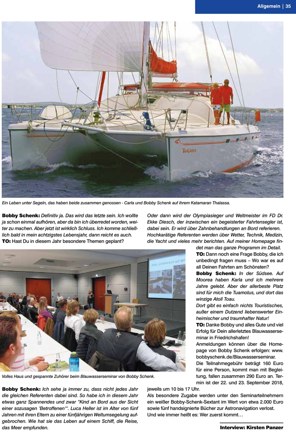 Im letzten TO-Magazin durfte ich Kirsten Panzer (Autorin des Buchs: Auf Seen segeln: Deutschlands schönste Binnenreviere im Porträt) in einem Interview Rede und Antwort stehen - hier ist es: