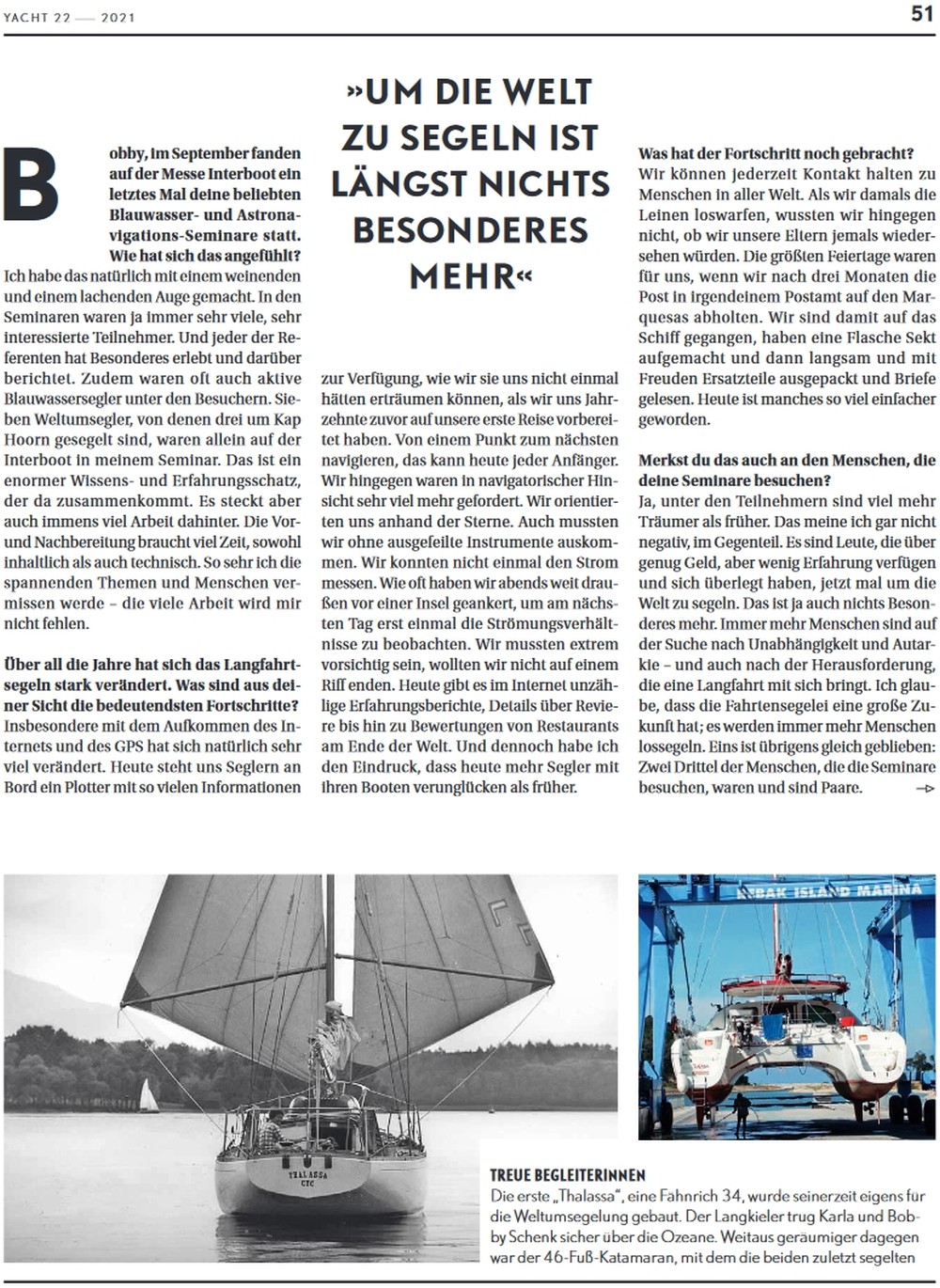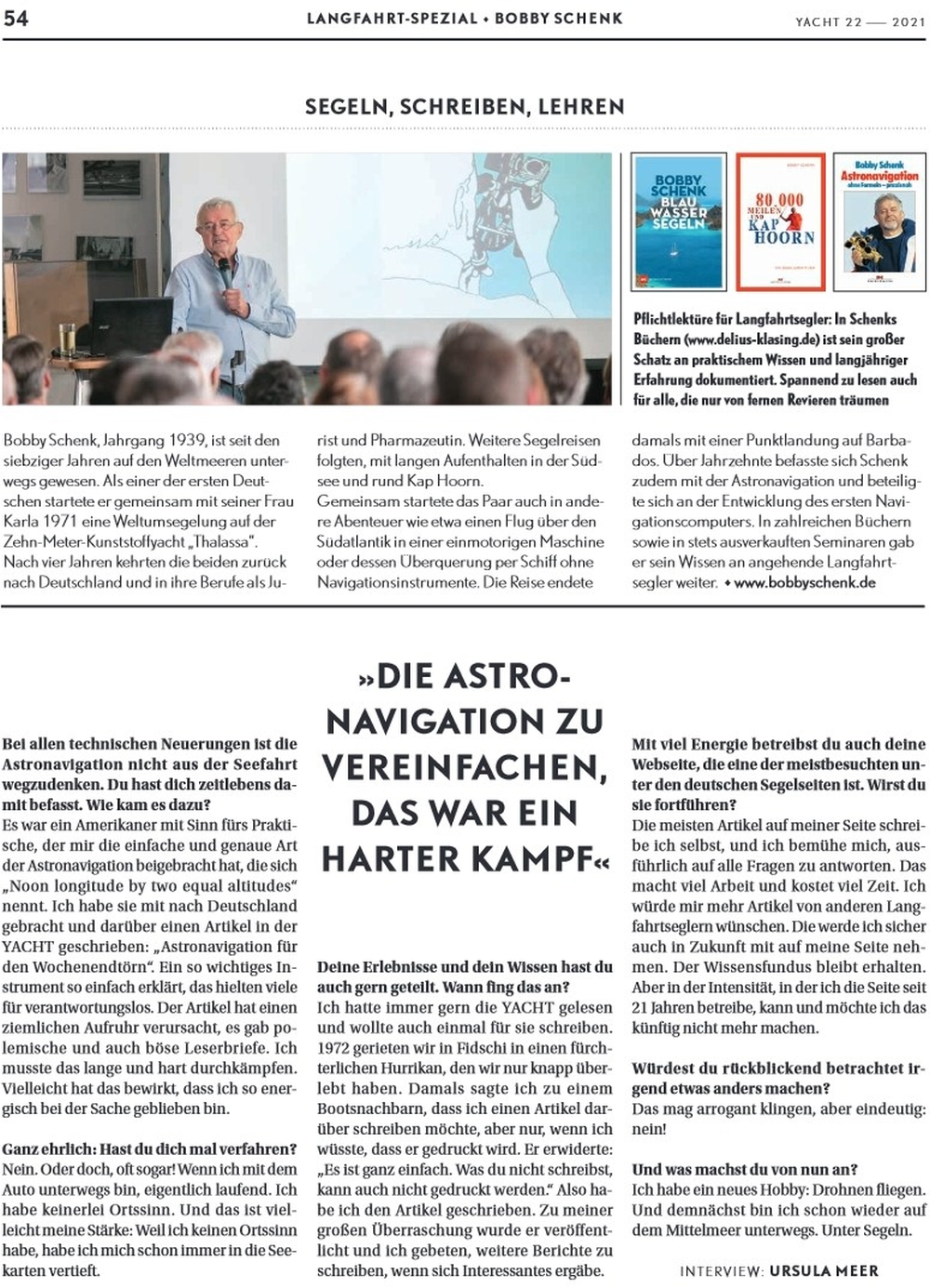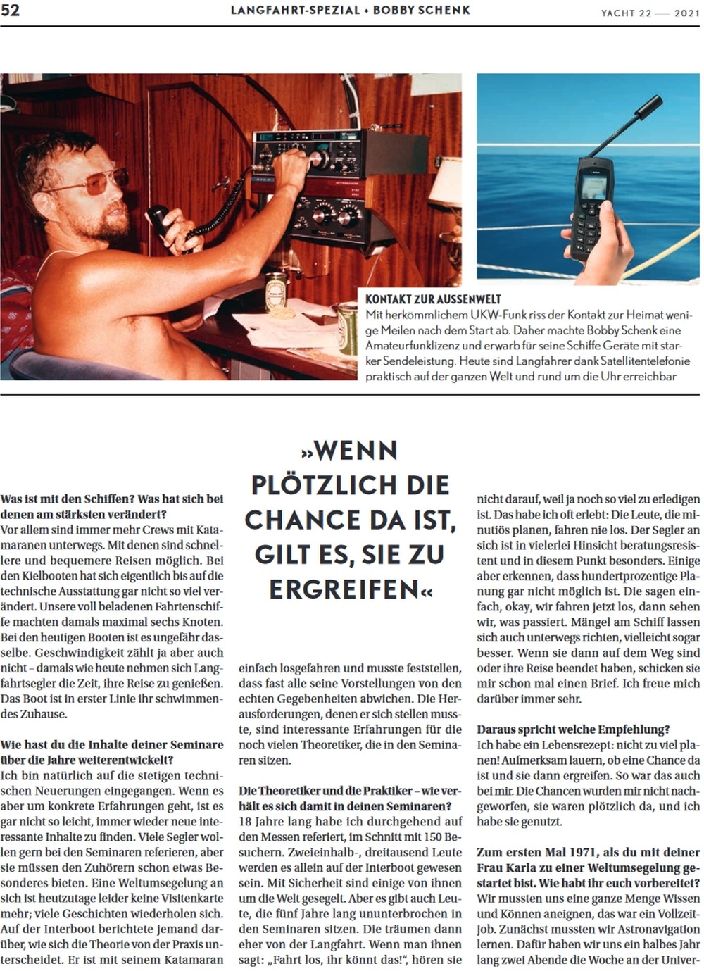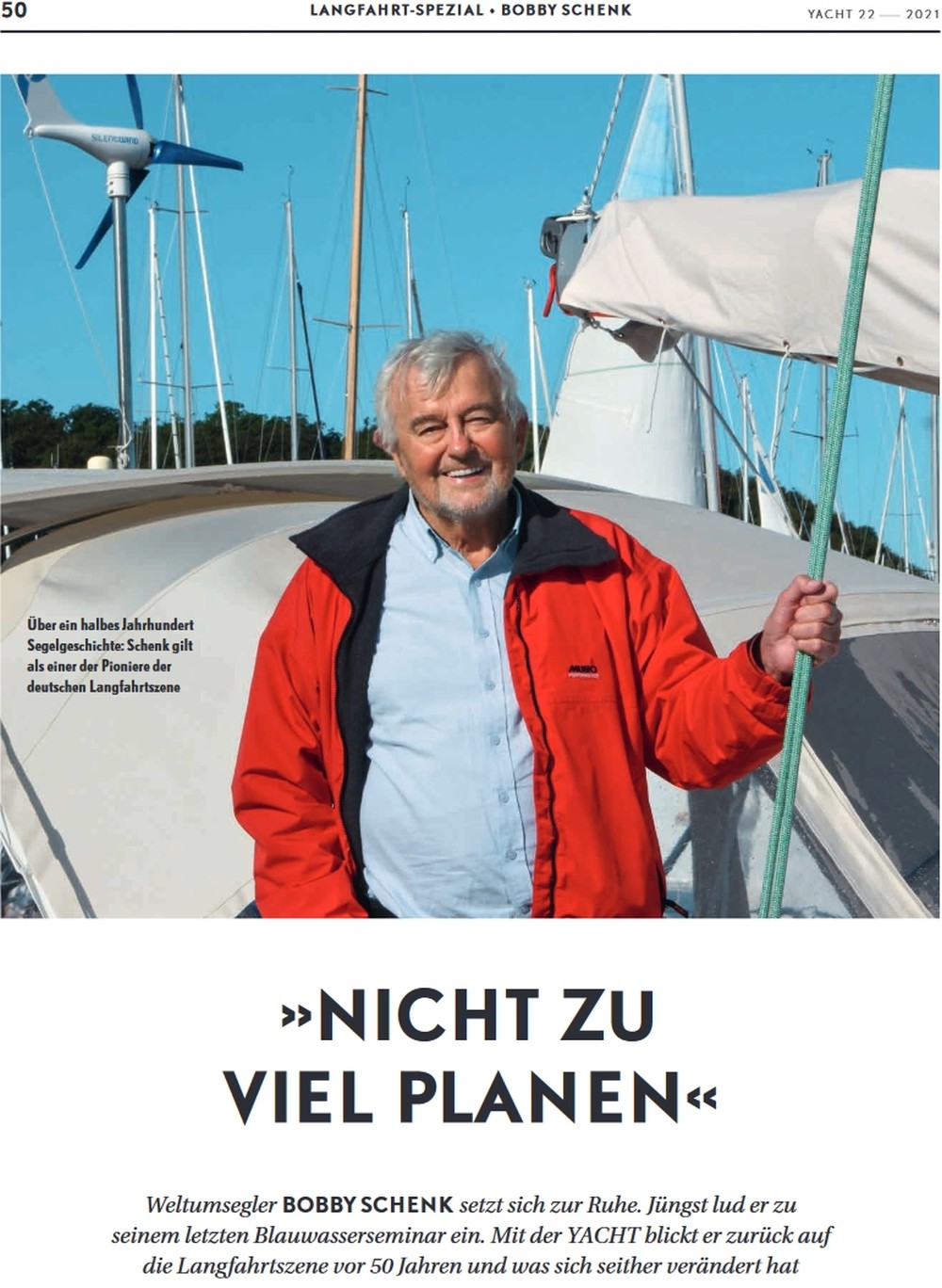 YACHT-Interview mit Bobby Schenk Ein Rückblick auf die Segelkarriere des Blauwasserpioniers zur Home-Page Page by Bobby Schenk E-Mail: mail@bobbyschenk.de URL of this Page is: http://www.bobbyschenk.de/n006/yachtfh.html Impressum und Datenschutzerklärung