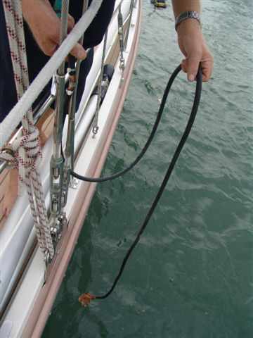 damit mit dem Masttopp verbunden ist, durchs Wasser geschleppt. Kostet kaum