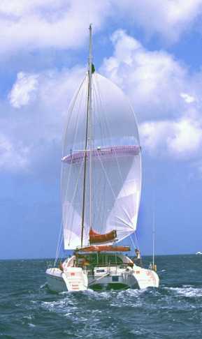 Katamaran dem oft durchgelattetem (und damit ziemlich unhandlichen) Großsegel.