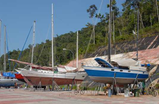längeren Zwischenstopp einen Platz suchen, wo man seine Yacht an Land abstellen