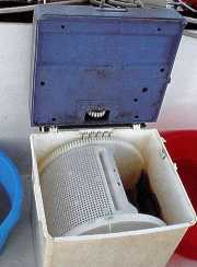Manche Yachties bevorzugen es, diese Arbeit selbst zu erledigen, aus Sparsamkeit oder weil sie an persönliche Dinge nicht gerne fremde Leute ran lassen. Sie benützen einen Eimer und Wäschestampfer aus Omas Zeiten oder erledigen die mühselige Arbeit sitzend mit den