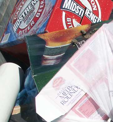 den Restabfall händisch zusammenpresst, wie man es bei Bierdosen ja schon