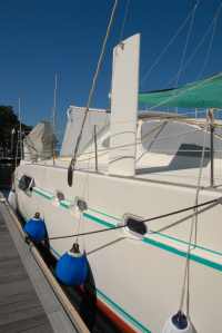 die Trosse am Ruder verhängt. Der Hauptvorteil dieser Lösung ist aber, dass der Kat zu