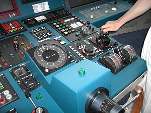 Anzeigeinstrument in Nähe des Steuerstandes. Auf großen Schiffen fährt man