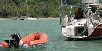 Außenborder am Heck des Beibootes haben, anschaue, dann fragt man sich, warum