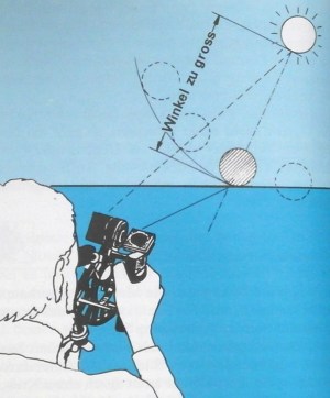 in die Rechnung eingeht. Der Sextant muß also im Zeitpunkt der Messung absolut senkrecht