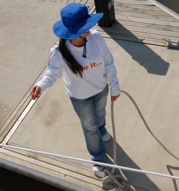 Nun wirst Du sagen, das sei ja alles ganz schön, aber in diesem Fall haben die Marineros halt nicht das Richtige gemacht, obwohl Du das denen wahrscheinlich zugerufen hast. Da hast Du eben Pech gehabt, und es wird Dir nichts anderes übrigbleiben, als das Manöver abzubrechen und einen eigenen Mann an geeigneter Stelle vor dem eigentlichen Hafenmanöver abzusetzen, der dann Eure Heckleinen in der Box wahrnimmt. Mit einem Katamaran und seinen zwei Maschinen dürfte es ein Leichtes sein, sein Heck so nahe an die Pier zu bringen, dass dann der Mann auf die Pier übersteigen (nicht springen!) kann. Karla und ich haben so das eigentliche Anlegemanöver auf an die 20 tausend Meilen mit unserem doch recht großen Katamaran nicht wenige Male vorbereitet.