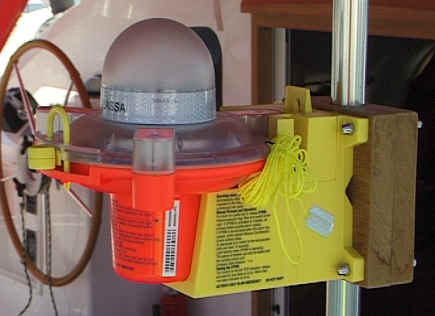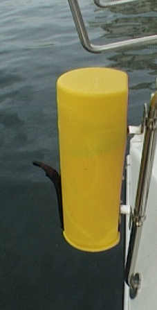 Die GPS-Postition ist auf 10 Meter genau, und wenn man die mal auf dem Papier, mindestens im Speicher hat, ist schon viel gewonnen. Dann aber ist, wie immer wichtig, die Unfallstelle zu markieren, und da spielt die "Mann-über-Bord-Boje" die herausragendste Rolle (vielleicht nach der Rettungsinsel, aber die läßt sich nicht in ein paar Sekunden aktivieren). Ich mag diese meterhohen Bambusstangen am Heck meines Schiffes nicht, da kann sich schon mal die Spischot verheddern, die Flagge und die Beleuchtung zerbröselt im UV-Licht nach einem Jahr. Deshalb stellt die Boje von Kadematic die Ideallösung dar. Der gelbe Container an der Heckreling wird geöffnet und schon bläst sich eine fast zwei Meter hohe "Boje" im Wasser auf, ähnlich wie bei einer automatischen Rettungsweste. Die beleuchtete Boje ist auch mit einem Treibanker versehen, sodaß die Unfallstelle für längere Zeit gut markiert ist. Die Boje kann übrigens, wie Rettungswesten, zu Übungszwecken schon mal ausgelöst und selbst wieder aktiviert werden.