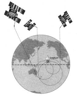 erhält der Navigator mit Hilfe von einem Satelliten einen Kreis, auf dem er