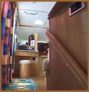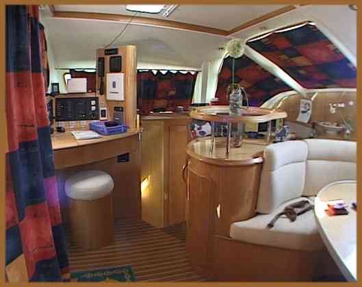 vom Eingang zum "Salon" - einen "Niedergang" gibt es auf dem Katamaran nicht -