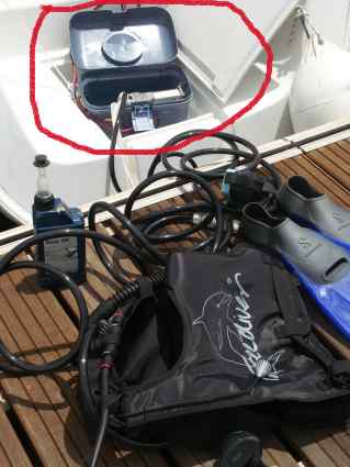 ins Saildrive-Gehäuse eindringen würde, siehe obiges Versuchsfoto.