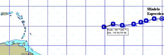 voraus - 1260 Seemeilen weit - liegt Trinidad.