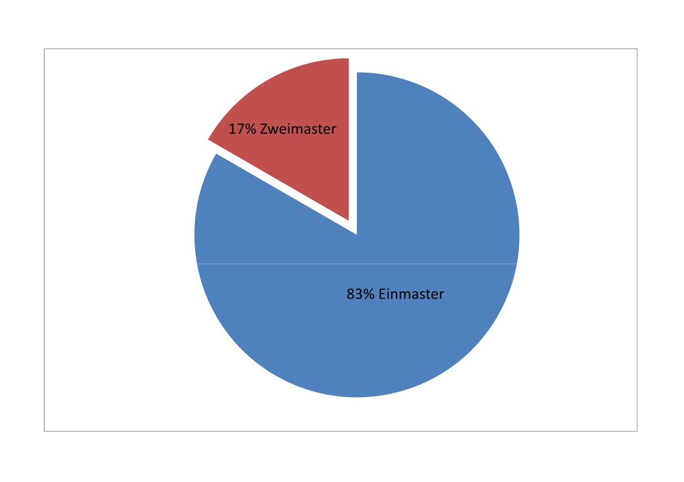 In jedem Hafen, wo Langfahrtsegler landen, genügt ein Blick über die Riggs der Yachten, um Klarheit zu bekommen, welches Rigg heute bevorzugt wird. Danach gibt es heute nur noch Ein-oder Zwei-Master, letztere fast immer als Ketsch. Wobei berücksichtig werden muss, dass die Werften - nach unserem Wissen bis auf eine - heute, im krassen Gegensatz zu früher, keine Zweimaster mehr anbieten. Die Zahlen beweisen es, nur jede sechste Yacht trägt 2 Masten, den Groß- und den Besan- Mast.