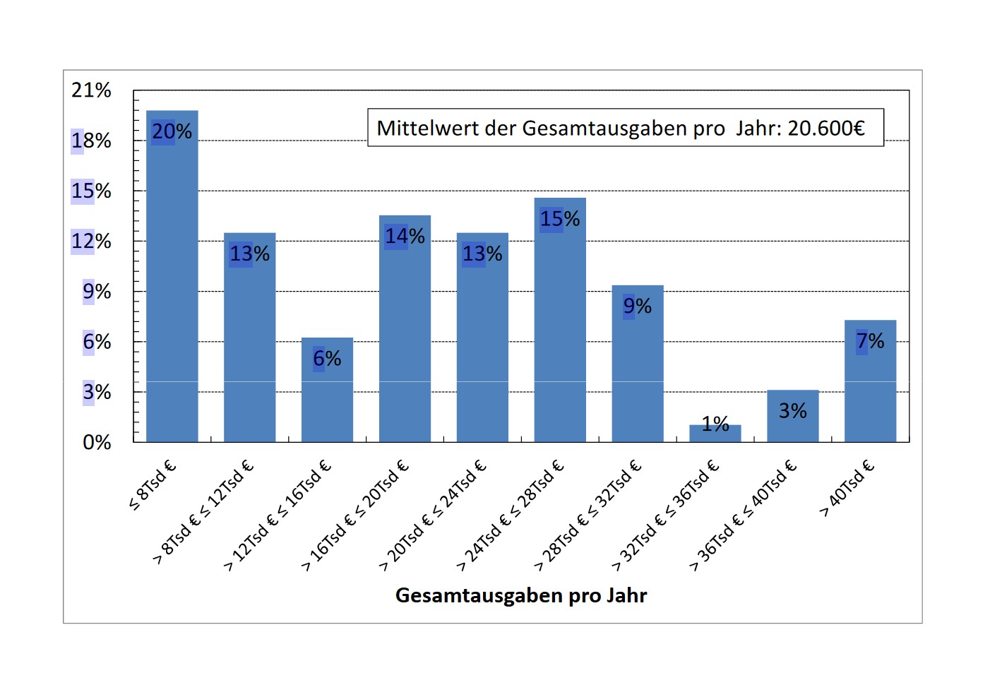 Die Gesamtausgaben aus den Angaben der über hundert Weltumseglern sind bei Törns um die Welt länger zurückliegen, hochgerechnet worden, weil 1000 Mark 1970 ja kaum mit 500 Euro im Jahre 2020 gleichzusetzen sind. Dadurch ergibt sich ein ziemlich klares Bild, das durch Schätzungen gerechtfertigt ist. Obwohl Segler, die auf eine zukünftiger Weltumrundung unter Segeln hinarbeiten, die Frage nach den zu erwartenden Geldausgaben sicher die am häufigsten gestellte Frage ist, kann kaum jemand eine solche beantworten, ohne die politische Finanzpolitik, ja auch die Lebensumstände bei der Weltumsegelung und die persönlichen Ansprüche an das Leben unterwegs zu kennen. Aber ein guter Anhaltspunkt ist die statistische Auswertung, nach der um die 2000 Euro plusminus pro Monat anzusetzen sind, damit Crews die Kosten für das Leben und für die Yacht aufbringen müssen. Damit kann man zu optimistischen Annahmen, aber auch zu entmutigenden Aussichten einen Riegel vorschieben.